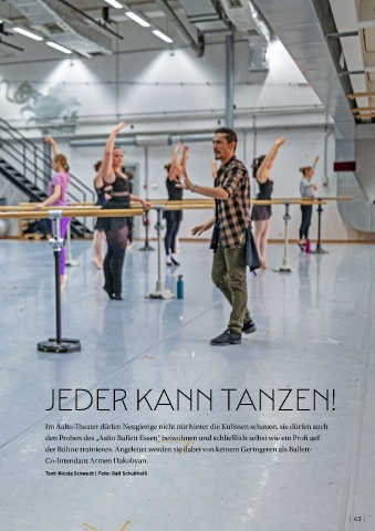 den Proben des „Aalto Ballett Essen“ beiwohnen und schließlich selbst wie ein Profi auf