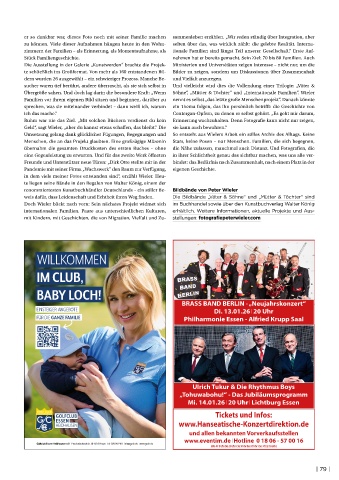 te schließlich ins Großformat. Von mehr als 160 entstandenen Bil- Bilder zu zeigen, sondern um Diskussionen über Zusammenhalt