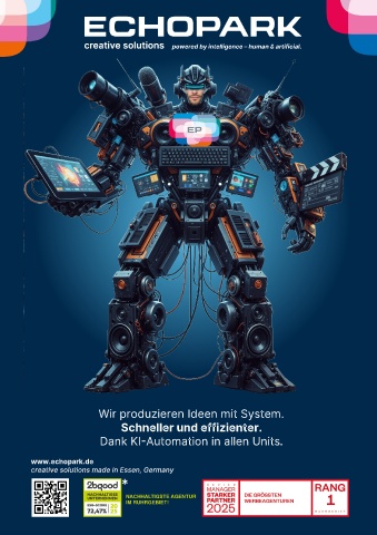 KULINARIK powered by intelligence – human & artificial. Wir produzieren Ideen mit System. Schneller und effizienter. Dank KI-Automation in allen Units. www.echopark.de creative solutions made in Essen, Germany * NACHHALTIGSTE AGENTUR IM RUHRGEBIET!